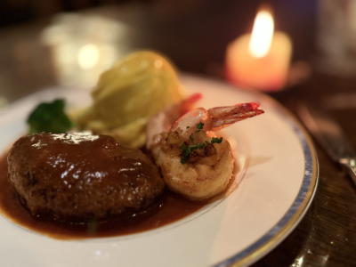 柔らかジューシー&スパイシーなボリューム満点のハンバーグステーキ。「しずく」時代から大人気の、お店の看板メニューです。地元・後志管内黒松内牛豚を100パーセント使用、「洋食の華」といわれるデミグラスソースをたっぷりと絡めた逸品です。