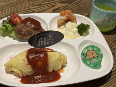 お子様向けの味付けにしたオムライス、ハンバーグ、ポテトをワンプレート+ドリンクでご用意いたしました。